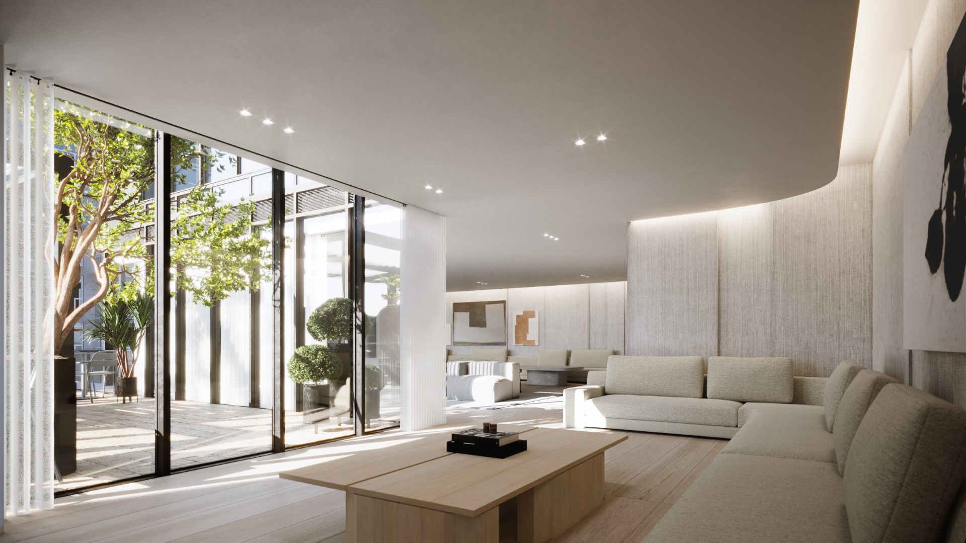 And with the interior images, lighting is applied expertly to help define the super minimalist spaces for a successful overall result.